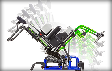 Tilt the occupant up to 45°. Single hand and foot tilt can be mounted on the left or right side.